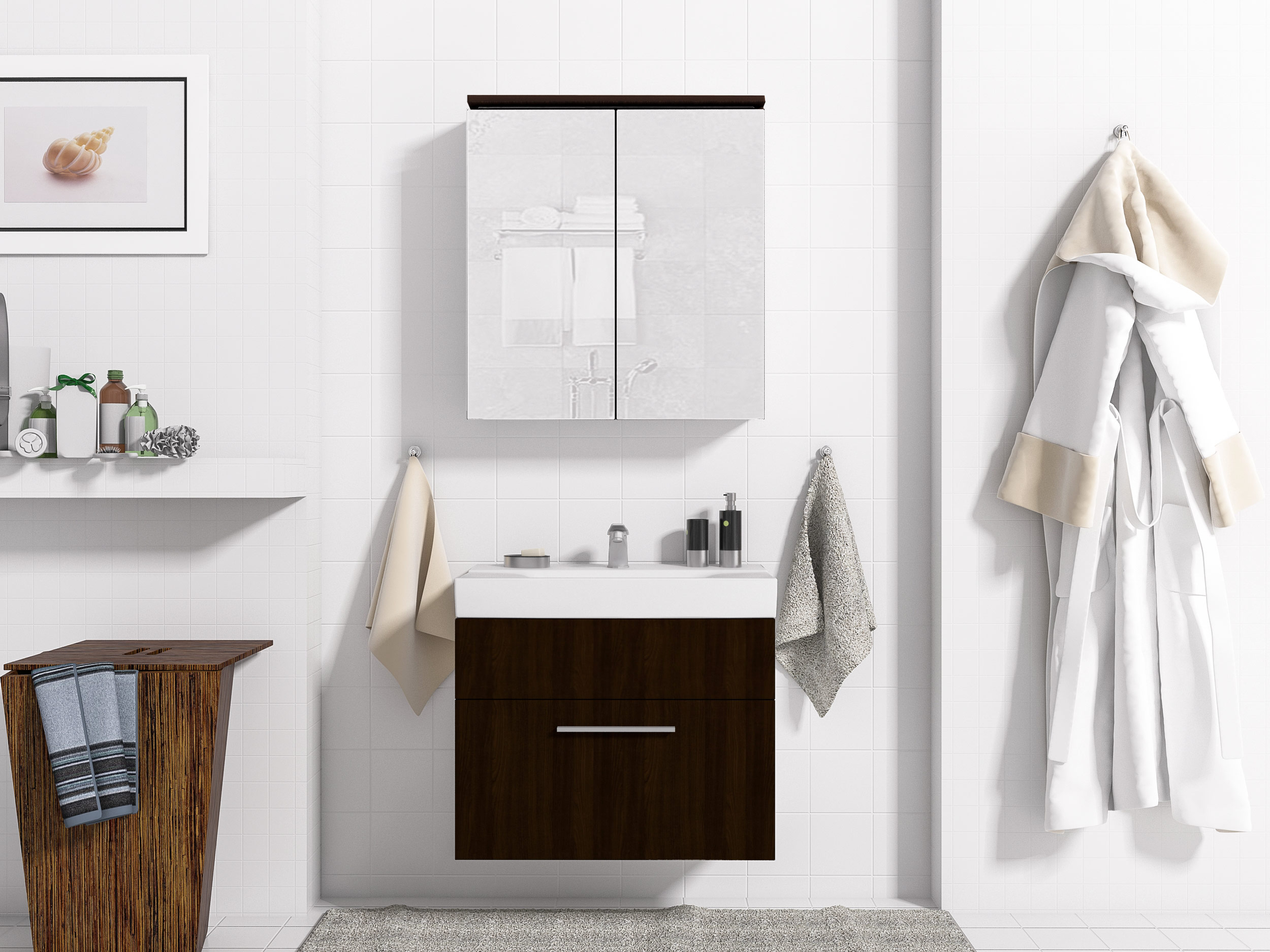 Lassen Sie sich verwöhnen von dem Badezimmerset MINI, das mit seinen praktischen Funktionen, dem harmonisch modernen Design zu einem unschlagbaren Preis-Leistungs-Verhältnis einfach jedermann begeistert.