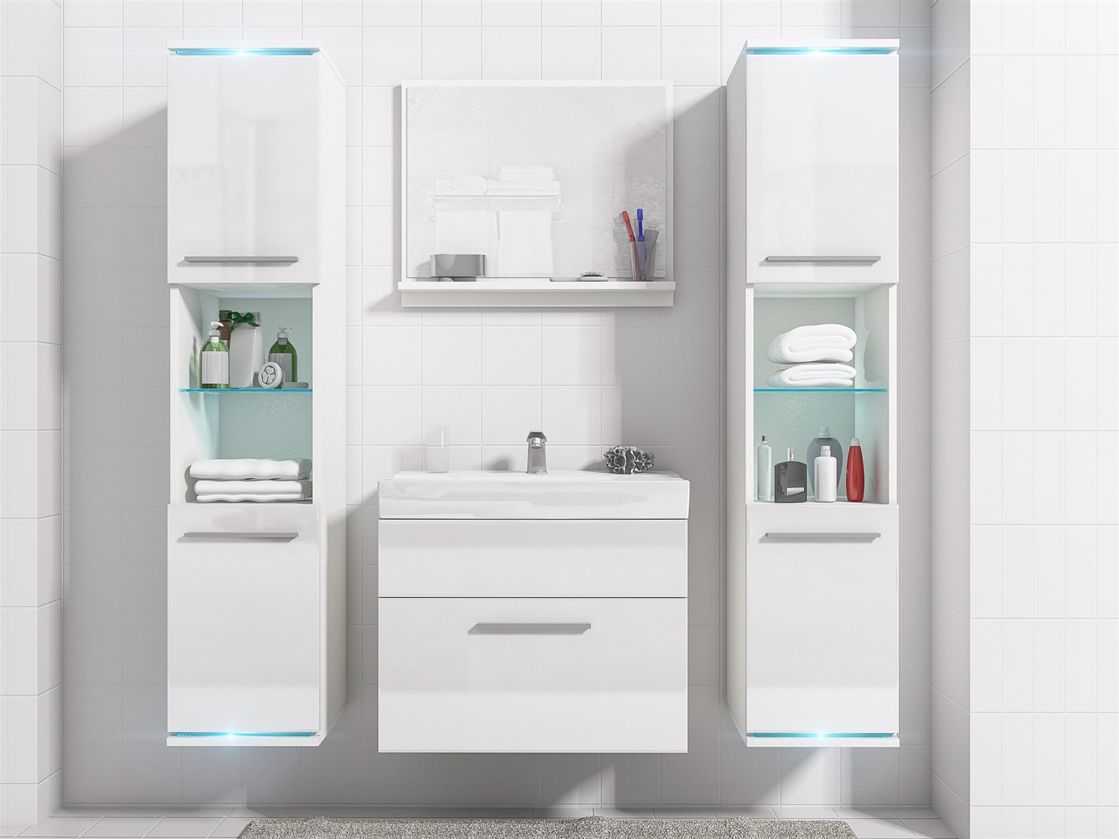 •  Badezimmer Set -Topline - Hochglanz Weiß / inkl. LED Beleuchtung
