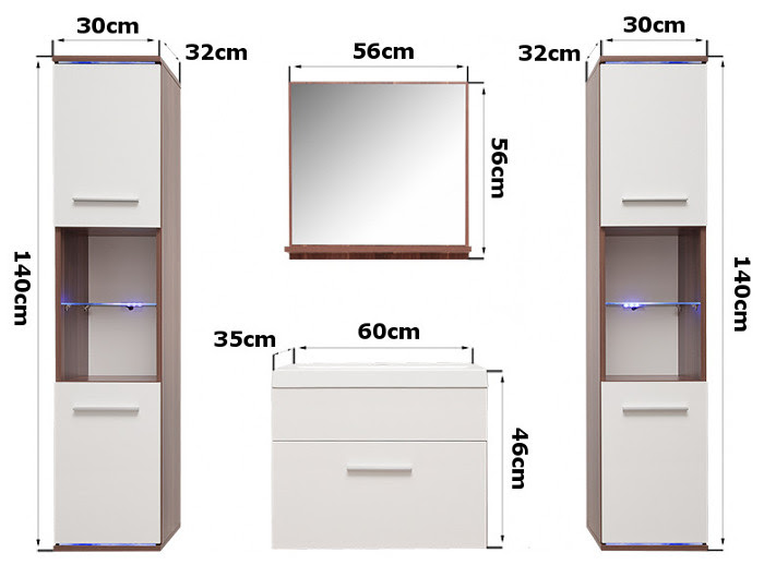 •  1x Waschtischunterschrank mit waschtisch (HxBxT): 46x60x35 cm