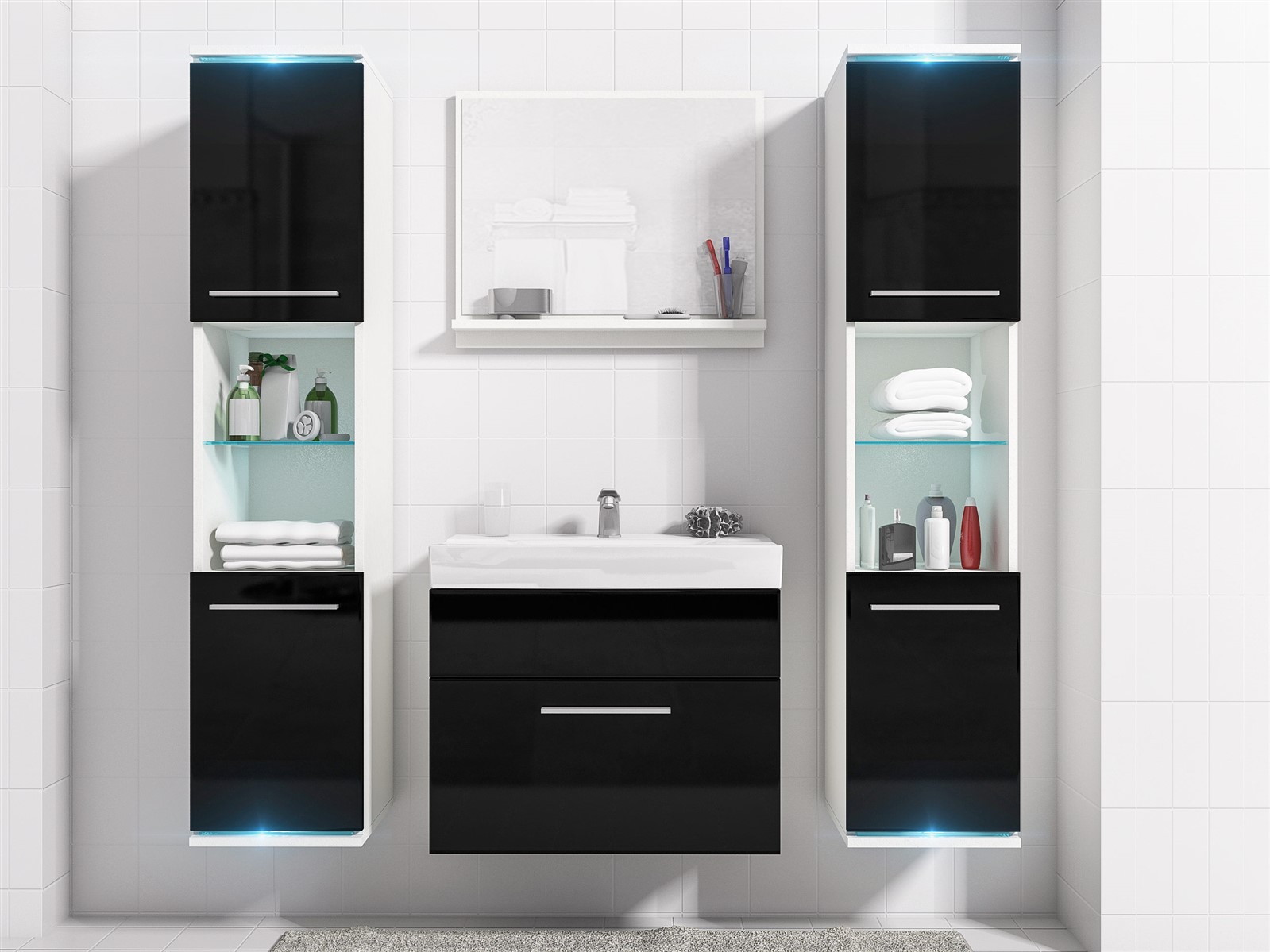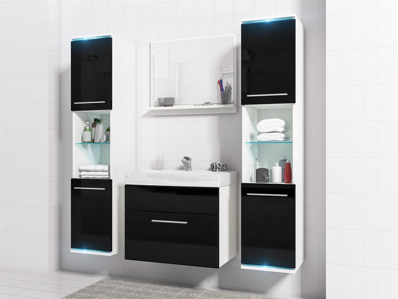 •  Badezimmer Set -Topline - Weiß matt / Schwarz HGL