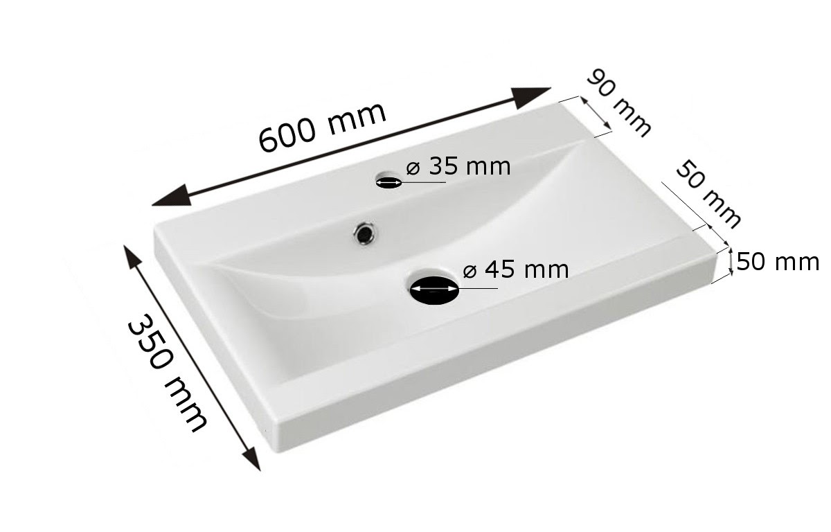 •  1x Waschtischunterschrank mit waschtisch (HxBxT): 46x60x35 cm