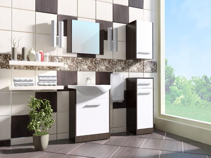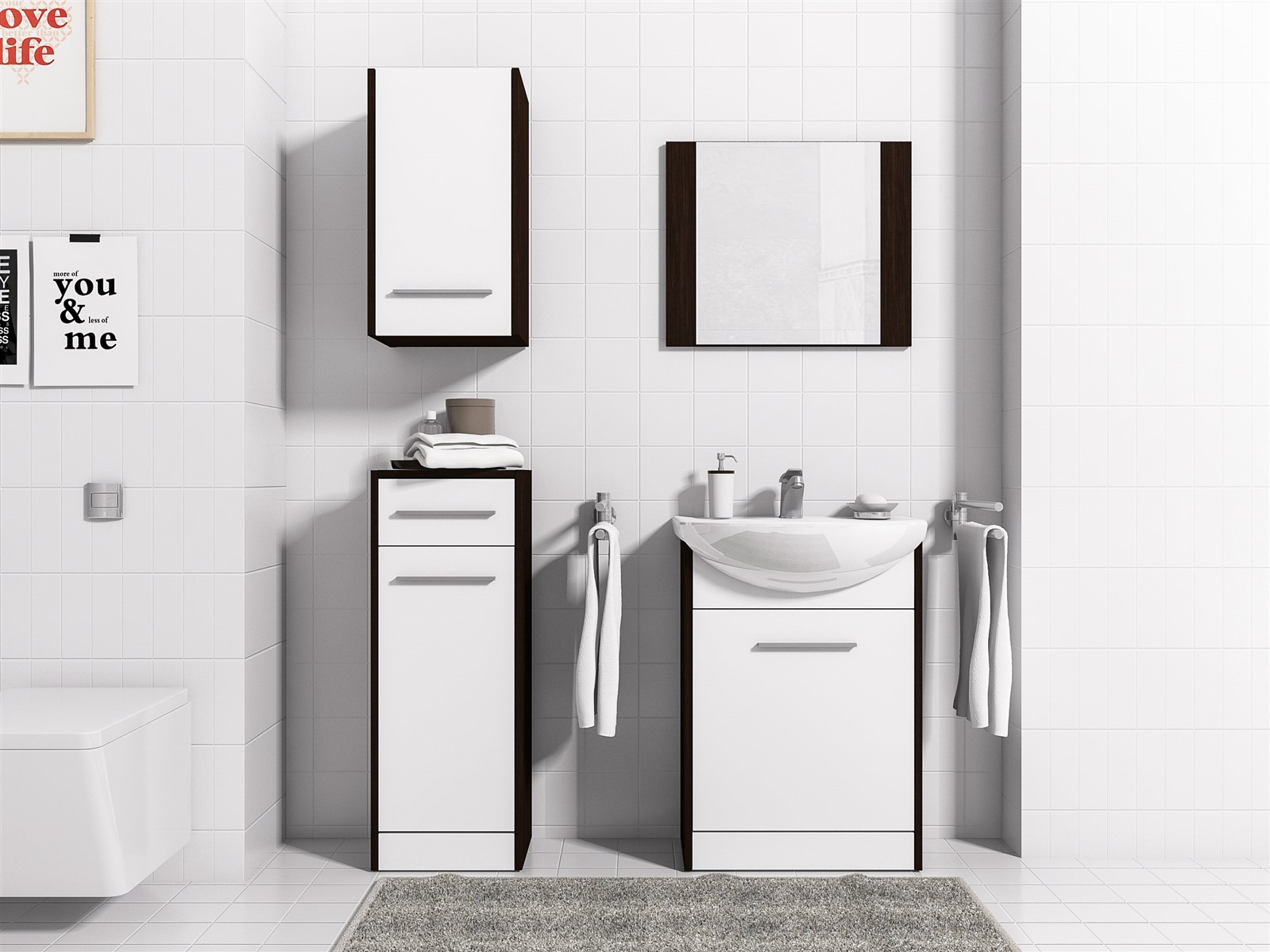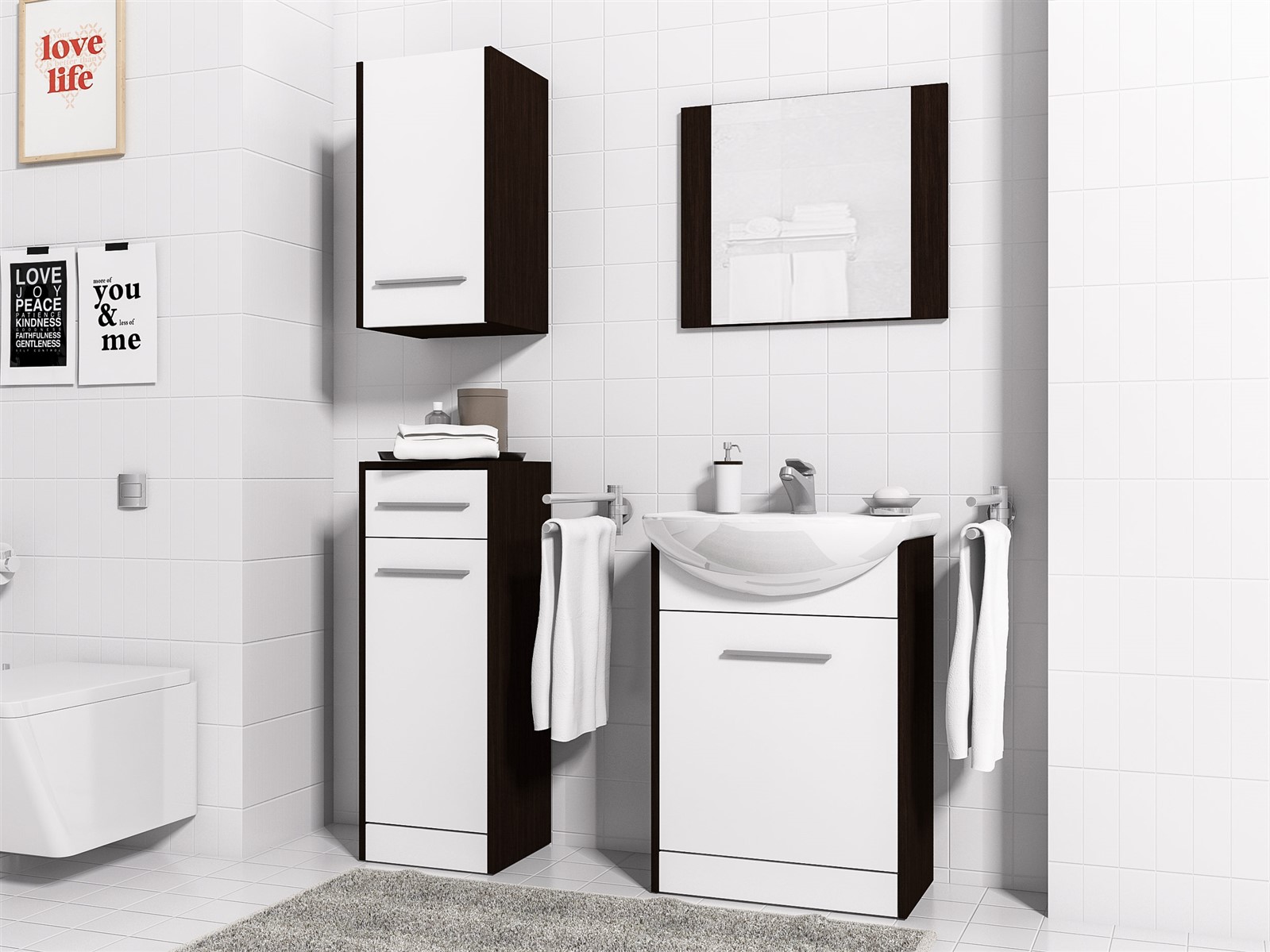 Badezimmer Set 5-Teilig in Wenge / Weiß matt