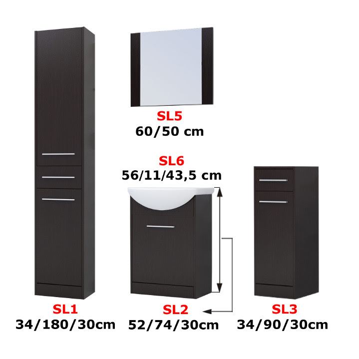 Badezimmer Set 5-Teilig in Wenge / Weiß matt