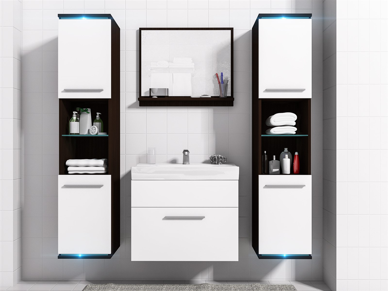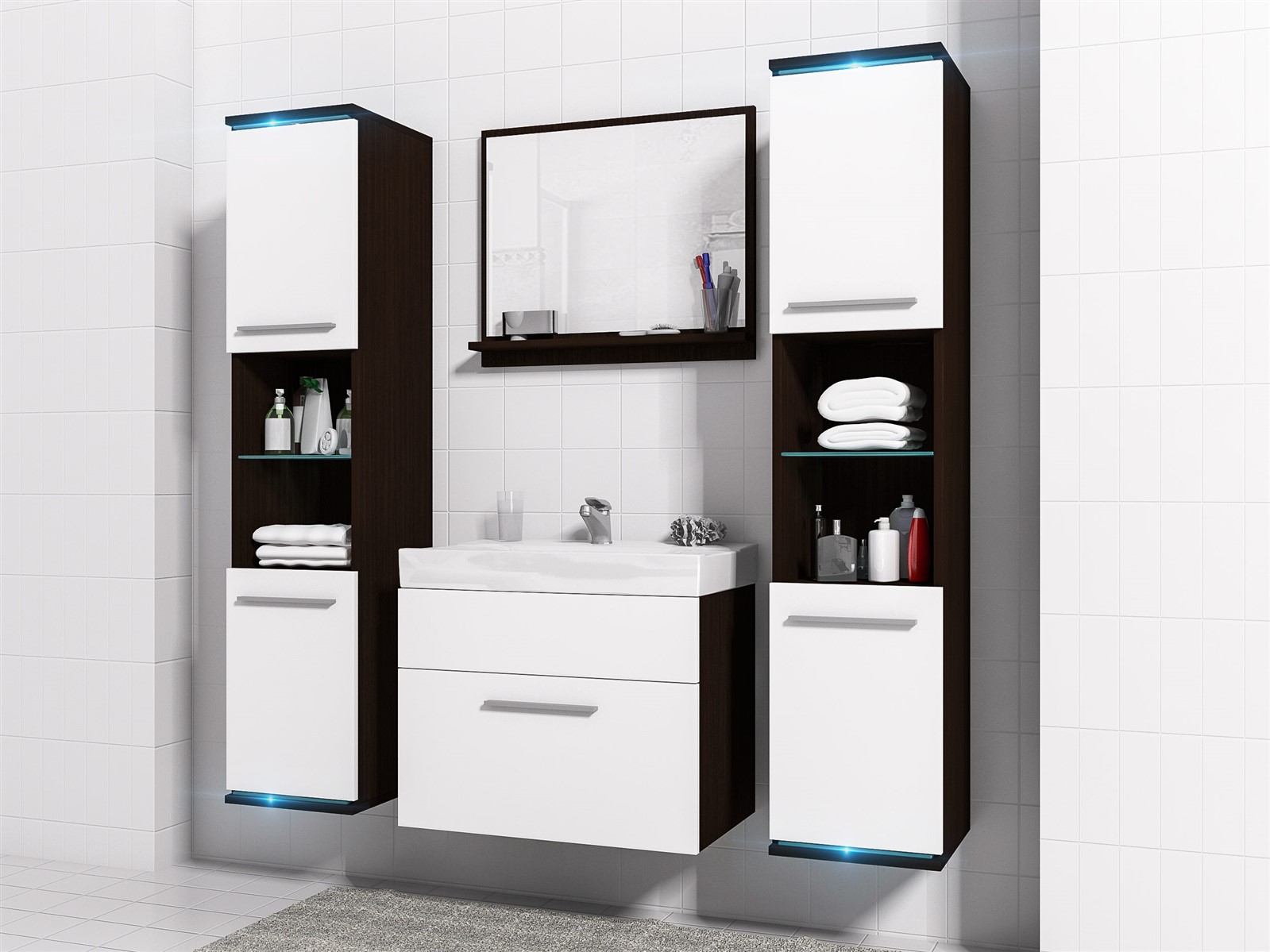 •  Badezimmer Set -Topline - Wenge / Weiß matt / inkl. LED Beleuchtung