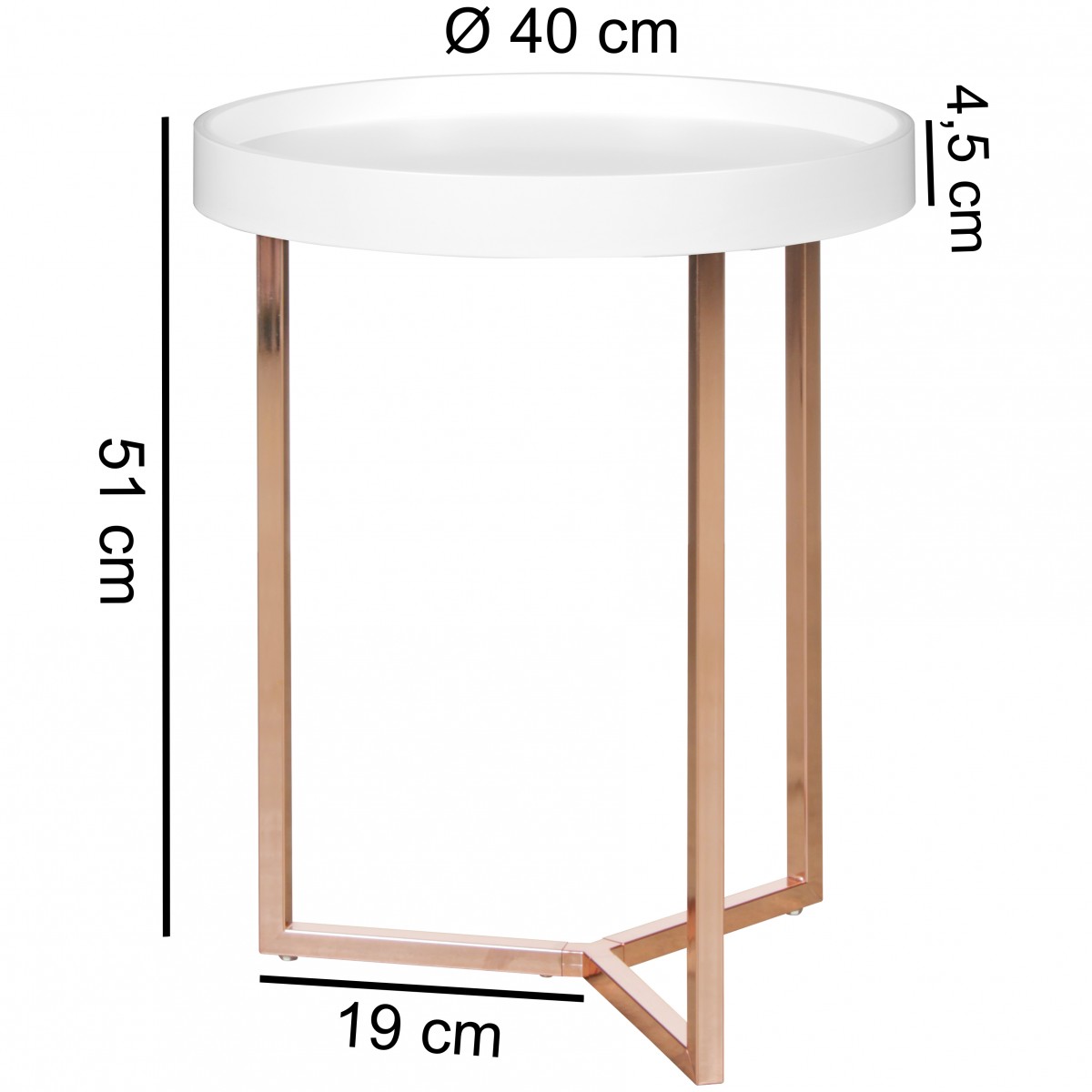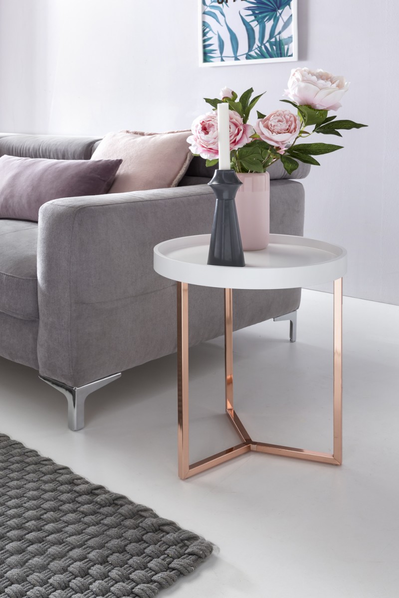 Beistelltisch Tisch MULES 40x40 cm Bugholz Weiss / Kupfer