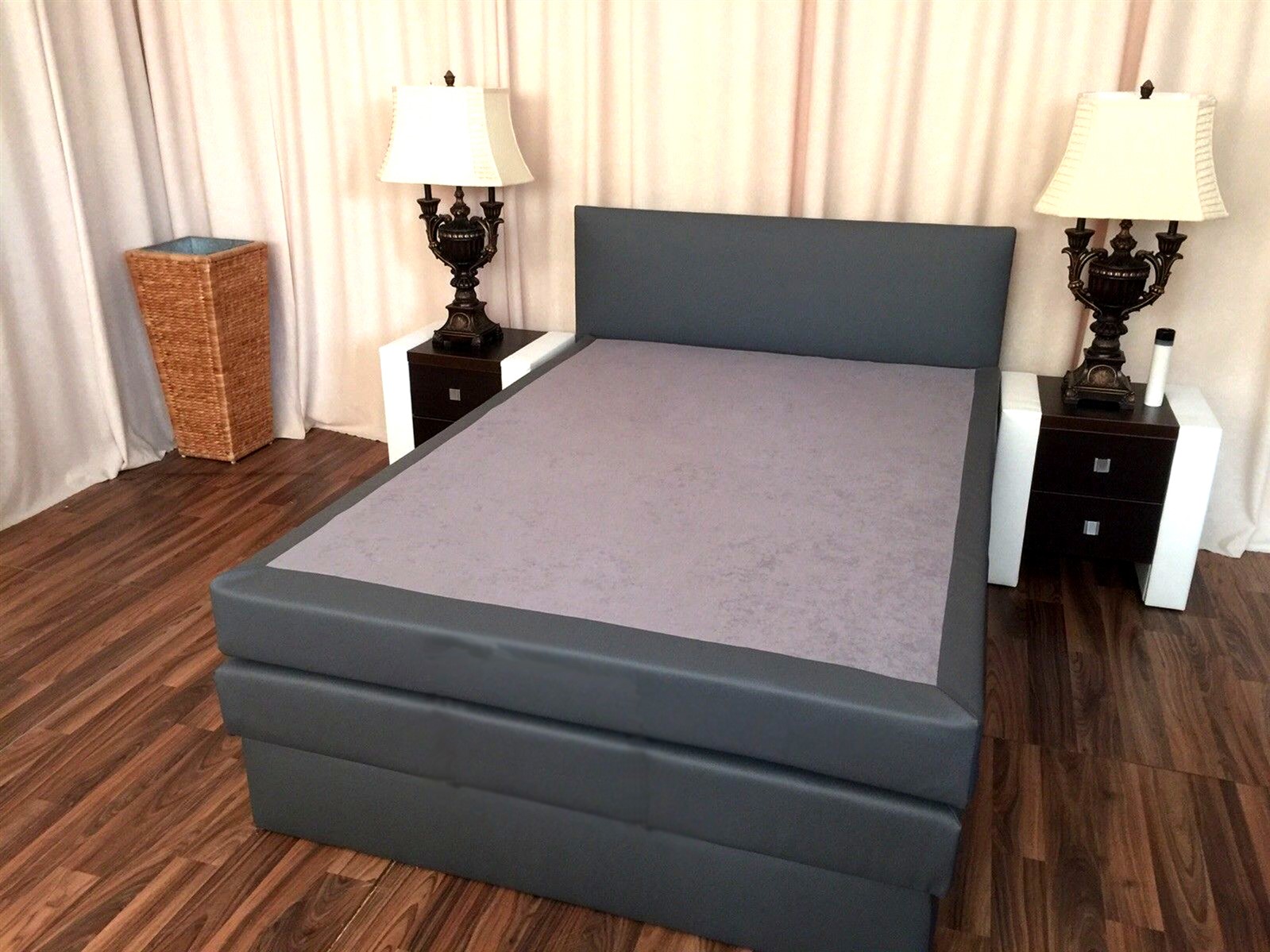 - Boxspringbett wird ohne Dekoration (siehe Foto) geliefert.