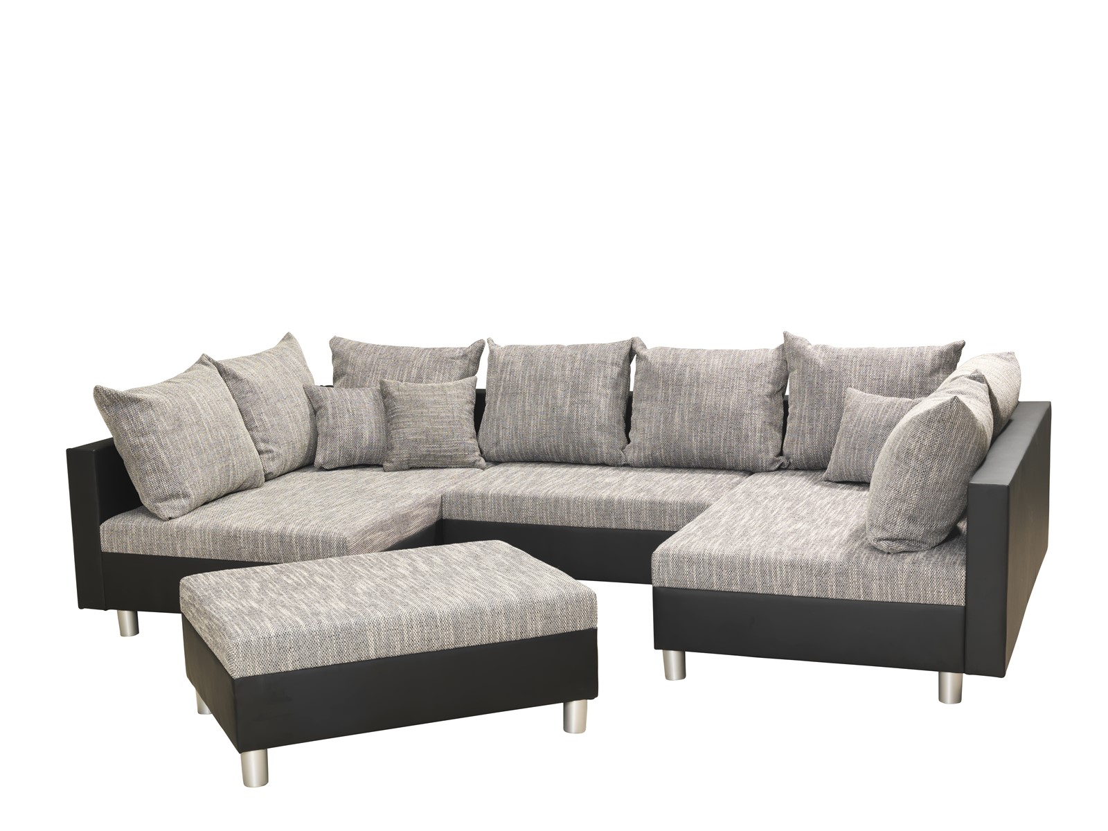 Couchgarnitur Allegra U-Form Schwarz-Grau inkl.Hocker