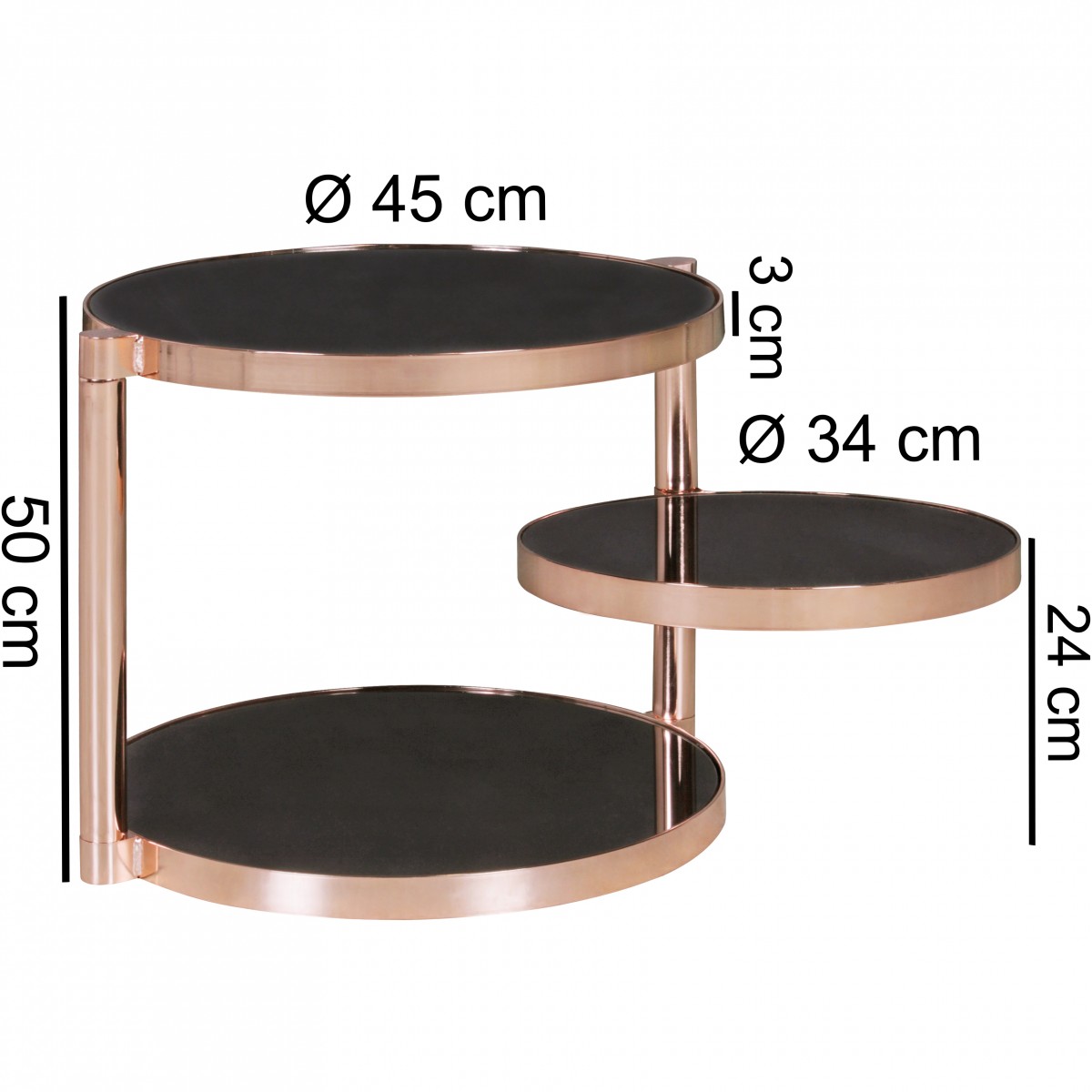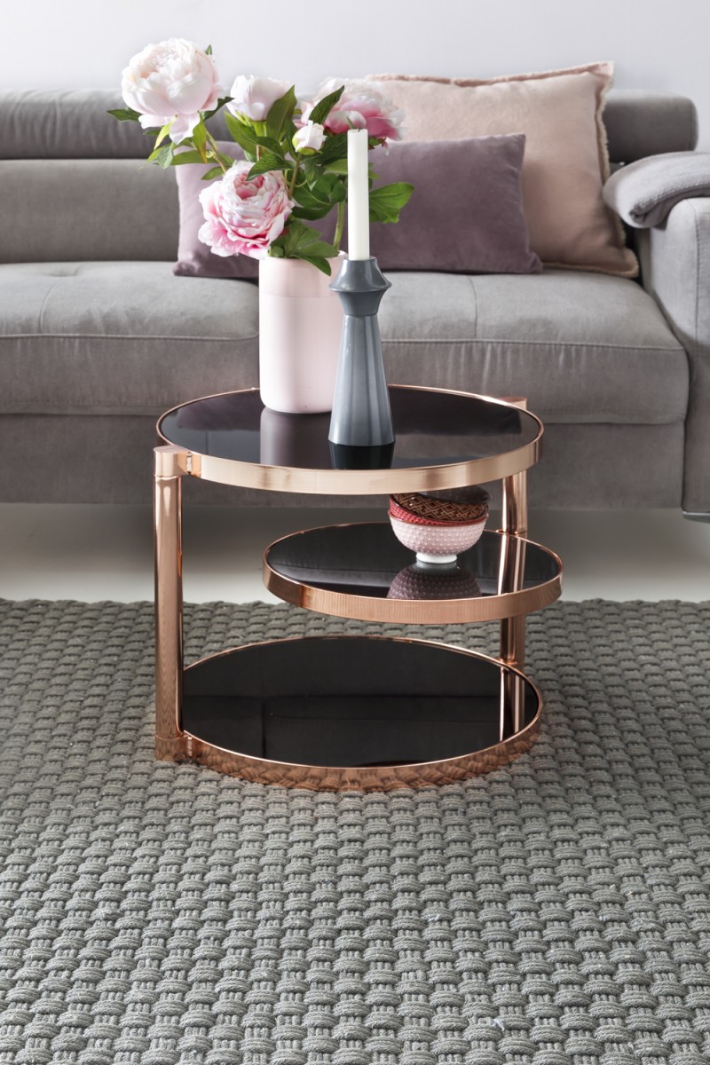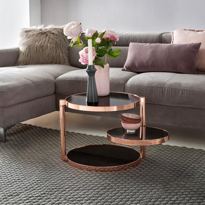 Couchtisch Beistelltisch CHARMS 45x45cm Metall Glas Schwarz / Kupfer