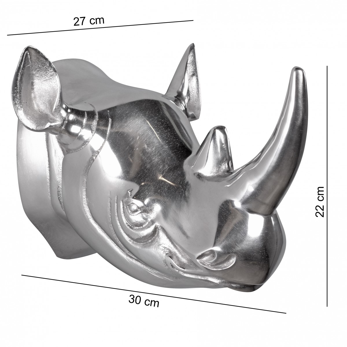 Deko Geweih Nashorn aus Aluminium Wanddekoration Farbe Silber
