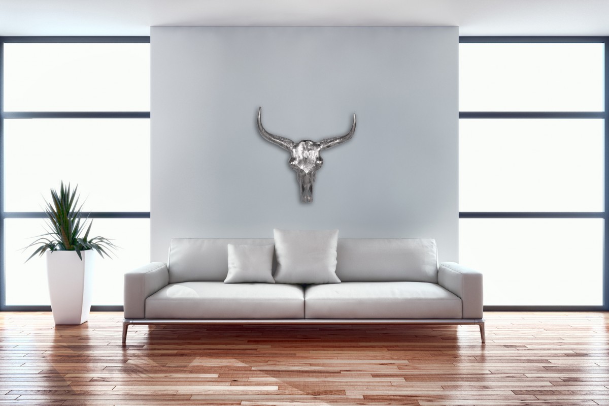 Deko XXL Design Wanddekoration "COW" Kuhkopf Aluminium silbern