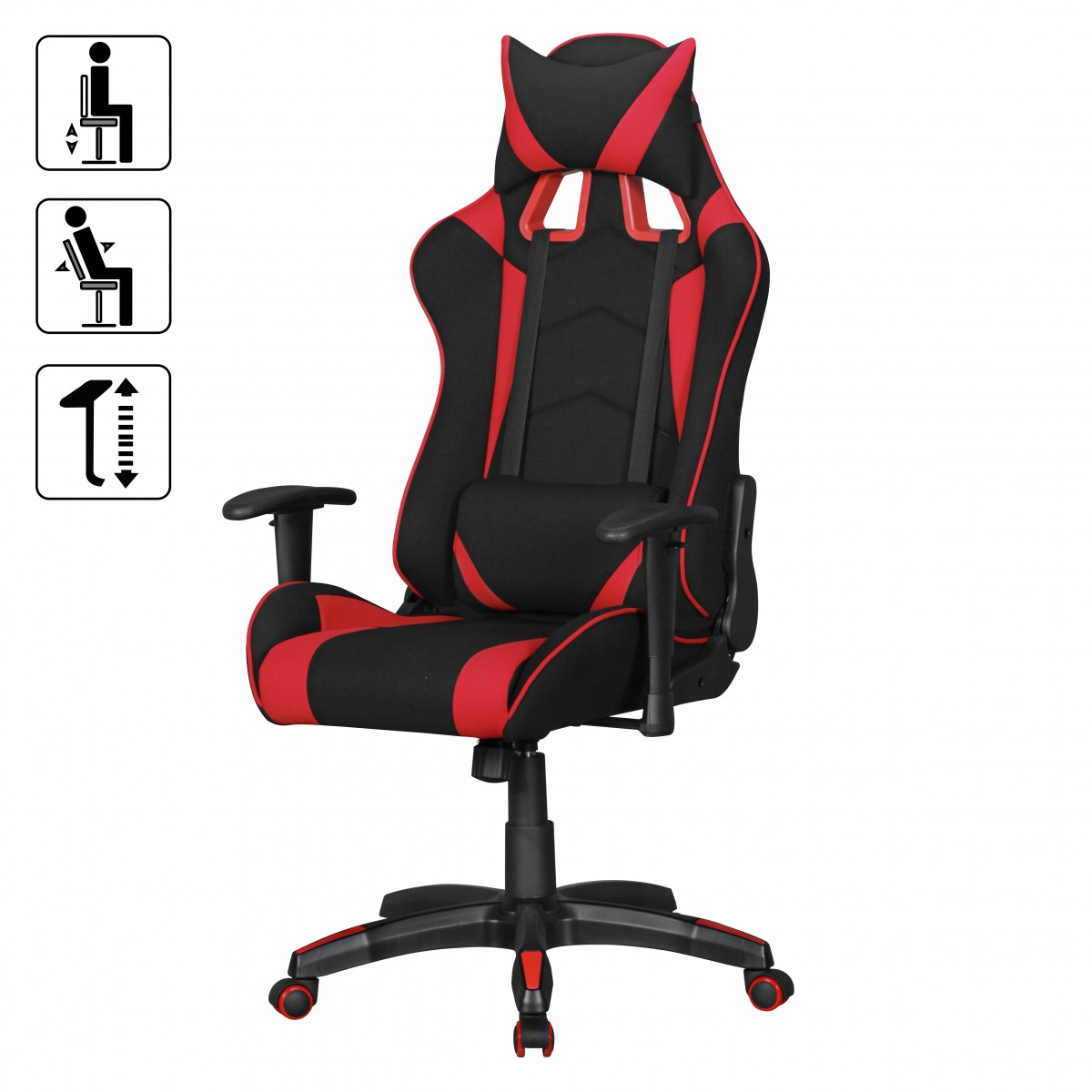 Drehstuhl Bürostuhl Chefsessel GAMING 1- Stoff Schwarz / Rot