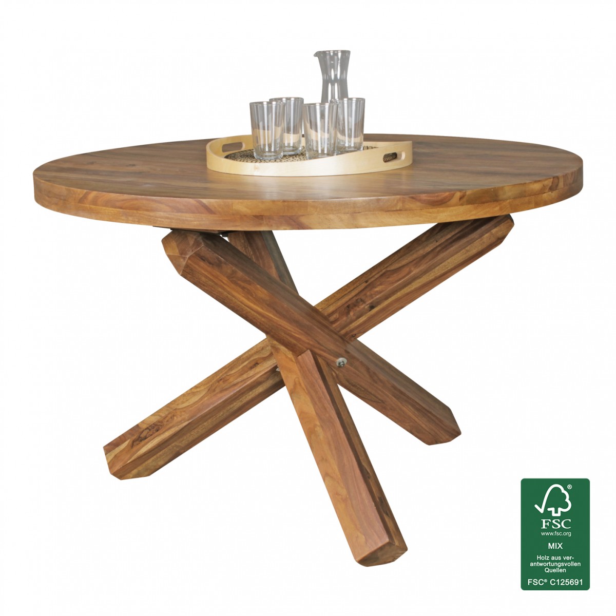 Esszimmertisch Tisch LANDO 120x120 cm Landhaus-Stil Sheesham Voll-Holz