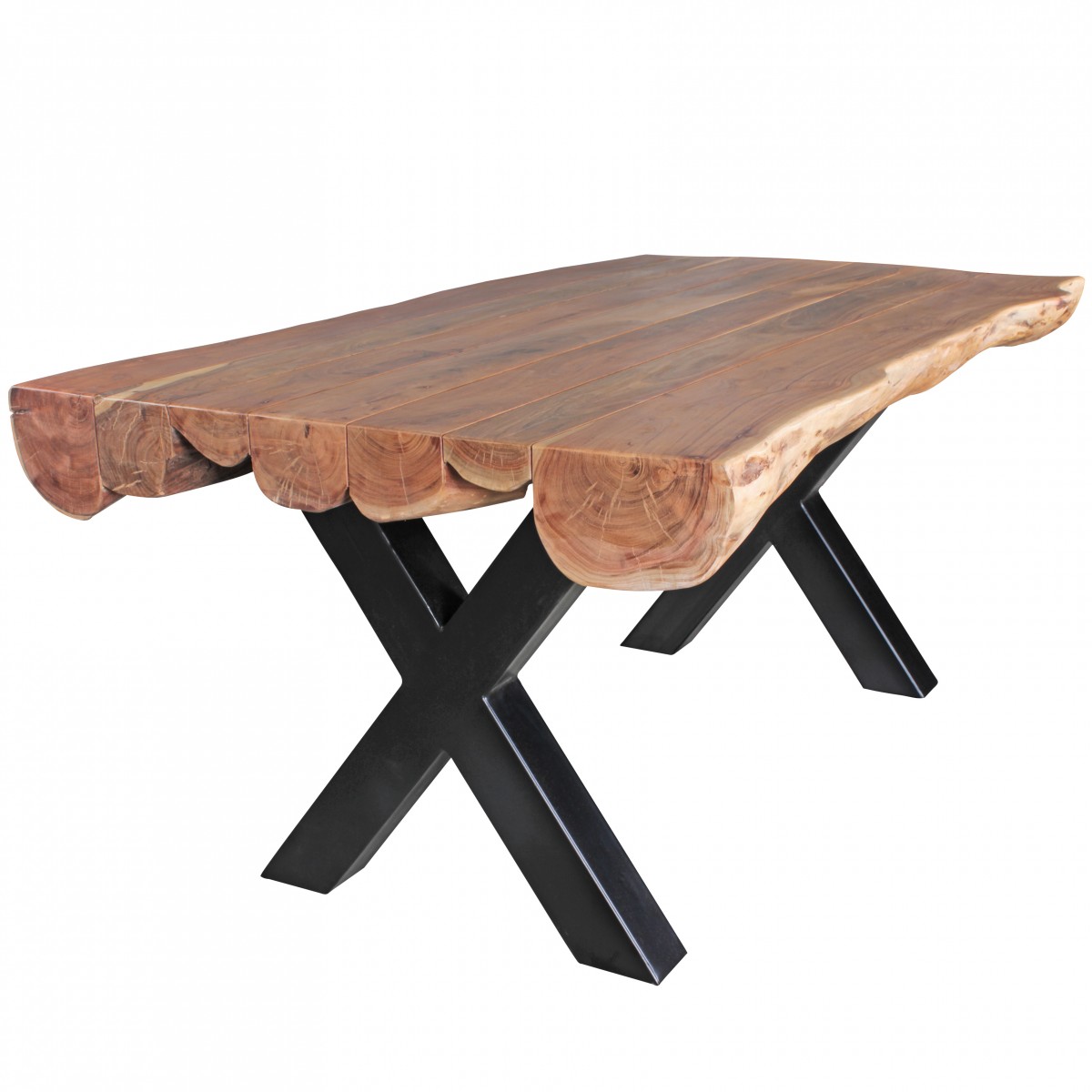 - Tisch steht auf massiven x-förmigen Metallbeinen