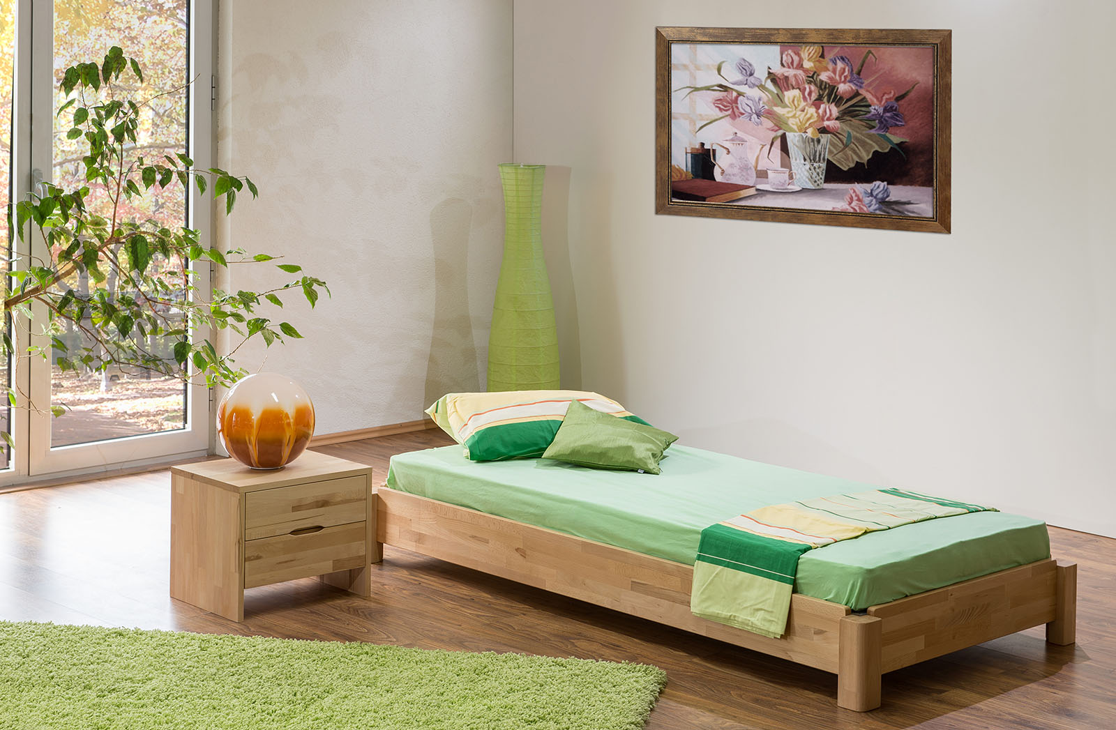 Massive Kernbuche macht jedes dieser Betten mit all seinen Kennzeichen der Natur zu einem Unikat. Genießen Sie die Wärme, die ein Massivholzbett in Ihre Schlafräume bringt.