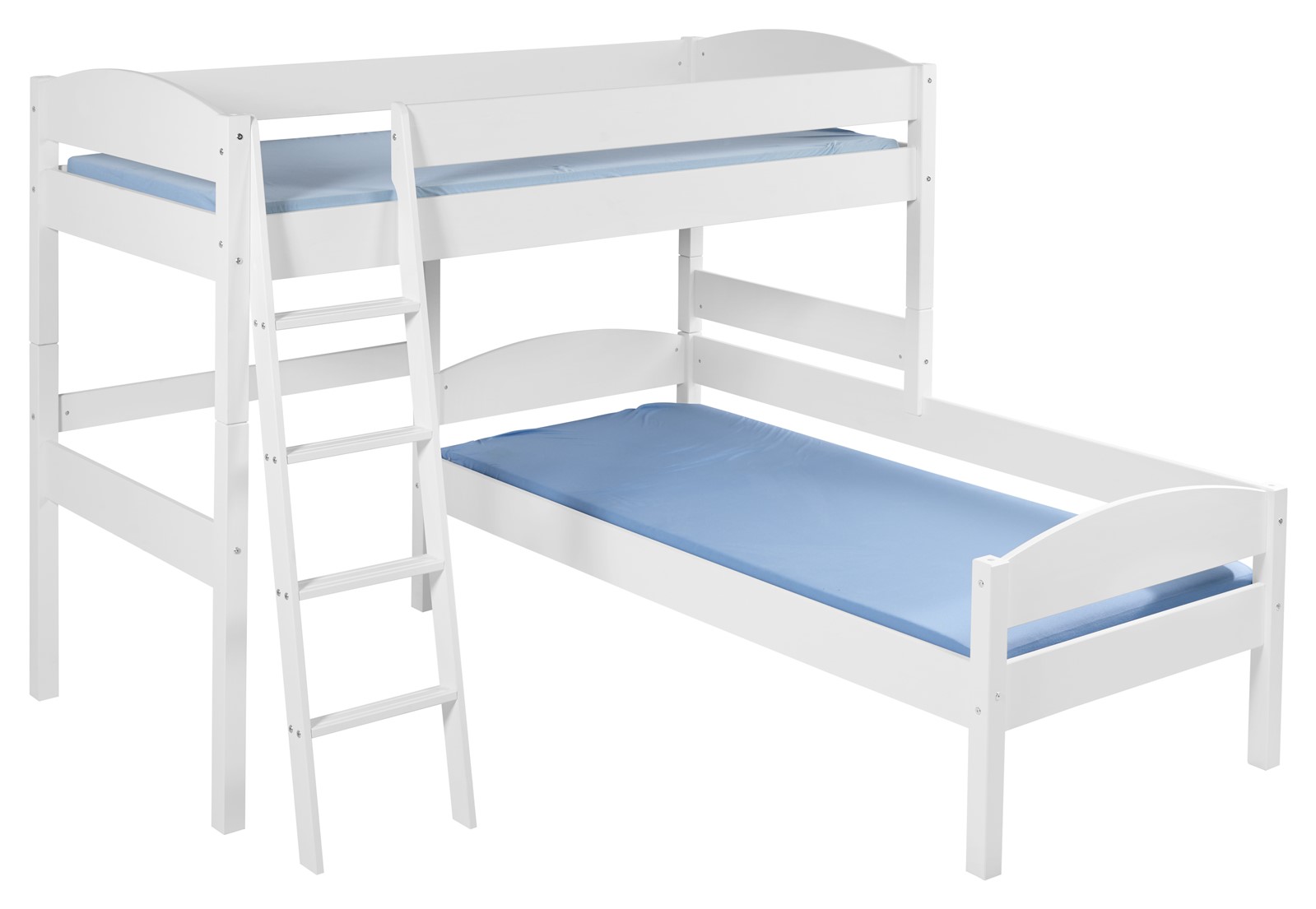 Hochbett Etagenbett L-Bett - MARTI - Kiefer Weiss inkl. 2 x Rollrost