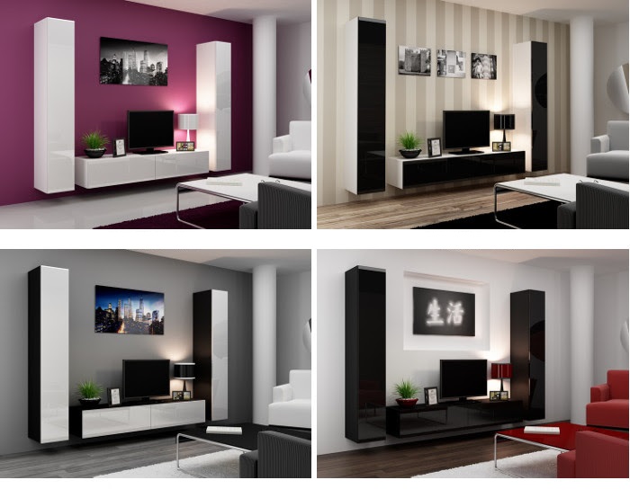 Mediawand "SENTIC 16" 3 tlg - Schwarz/ Weiß Hochglanz