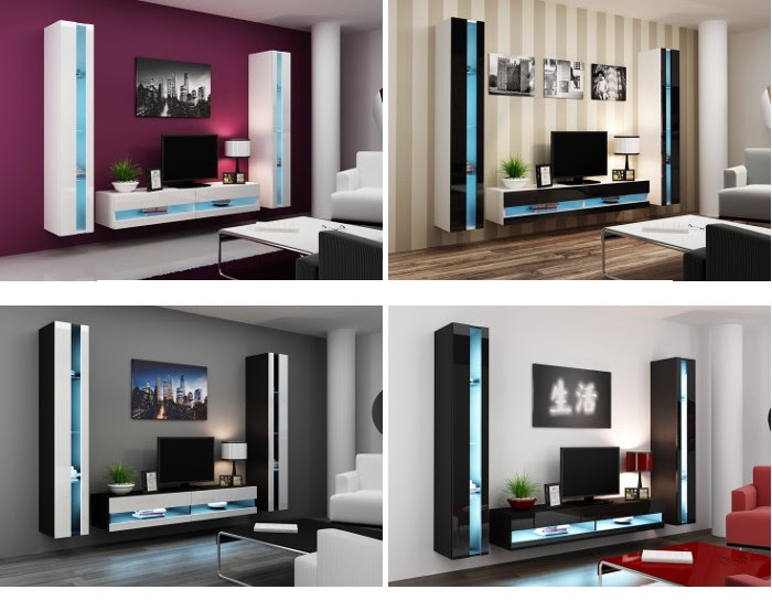 Mediawand "SENTIC 3" 3 tlg - Schwarz Hochglanz