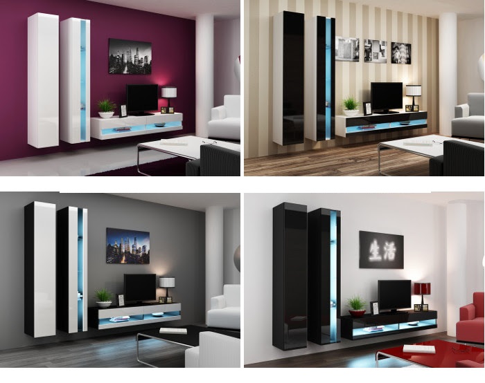 Mediawand "SENTIC 5" 3 tlg - Weiß Hochglanz