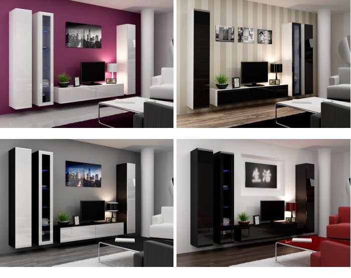 Mediawand "SENTIC 14" 4 tlg - Schwarz Hochglanz