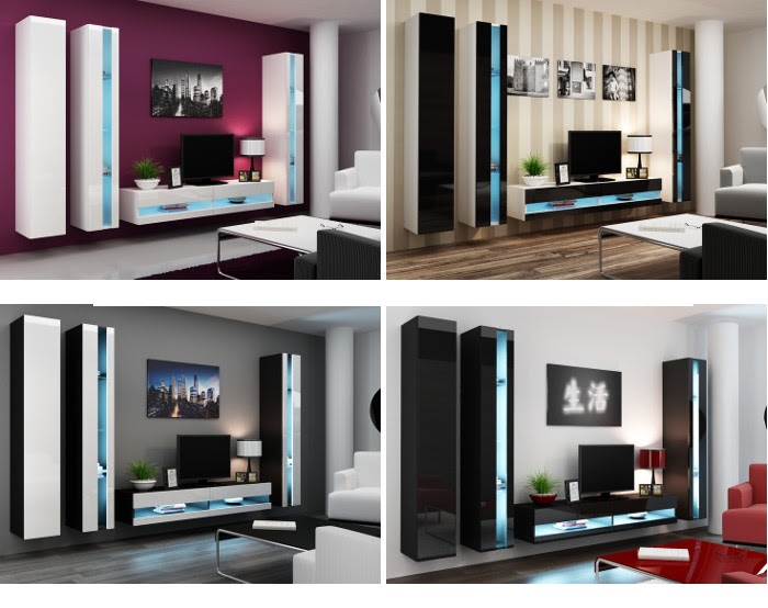 Mediawand "SENTIC 6" 4 tlg - Schwarz Hochglanz