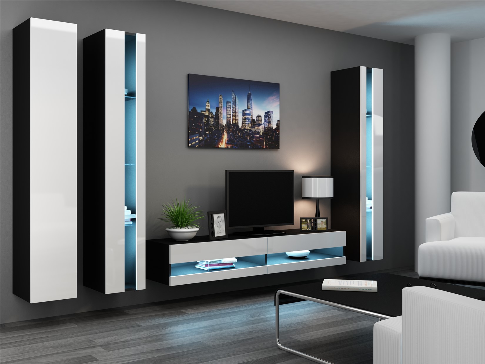 Mediawand Wohnwand 4 tlg - SENTIC 6 - Schwarz / Weiss Hochglanz