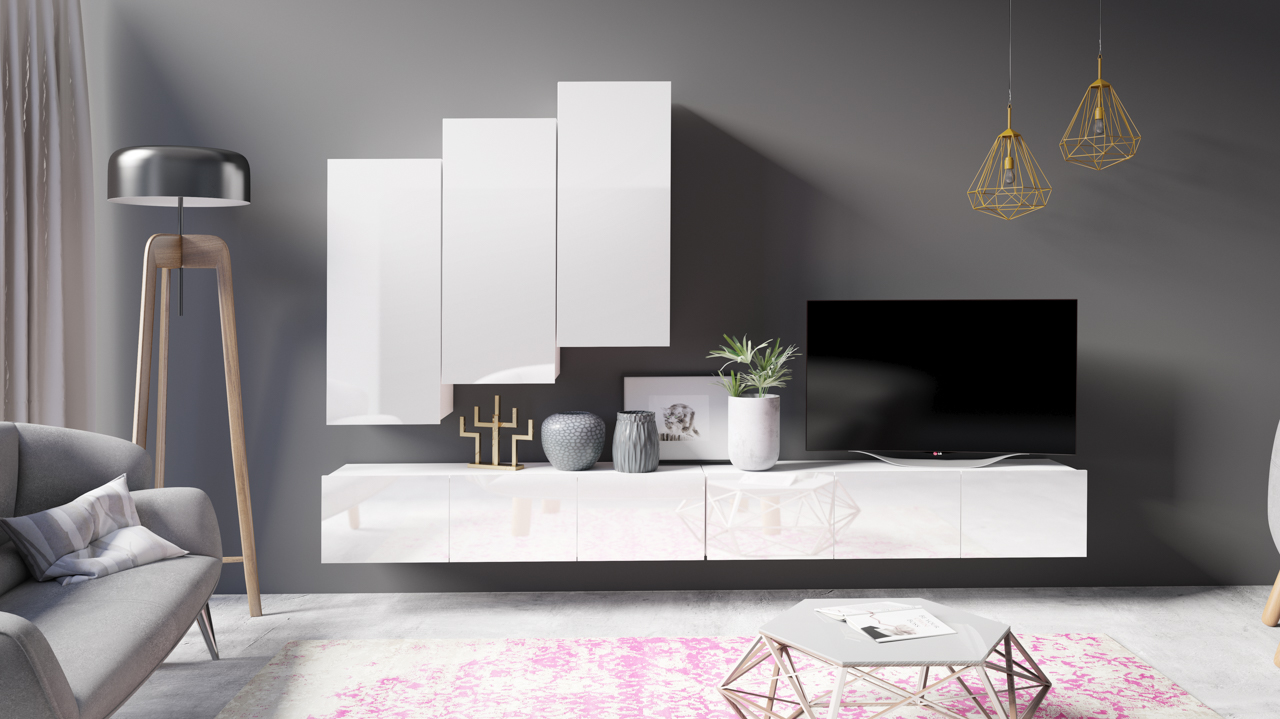 - 1 x Mediawand - LABRI 15 - Weiß Hochglanz