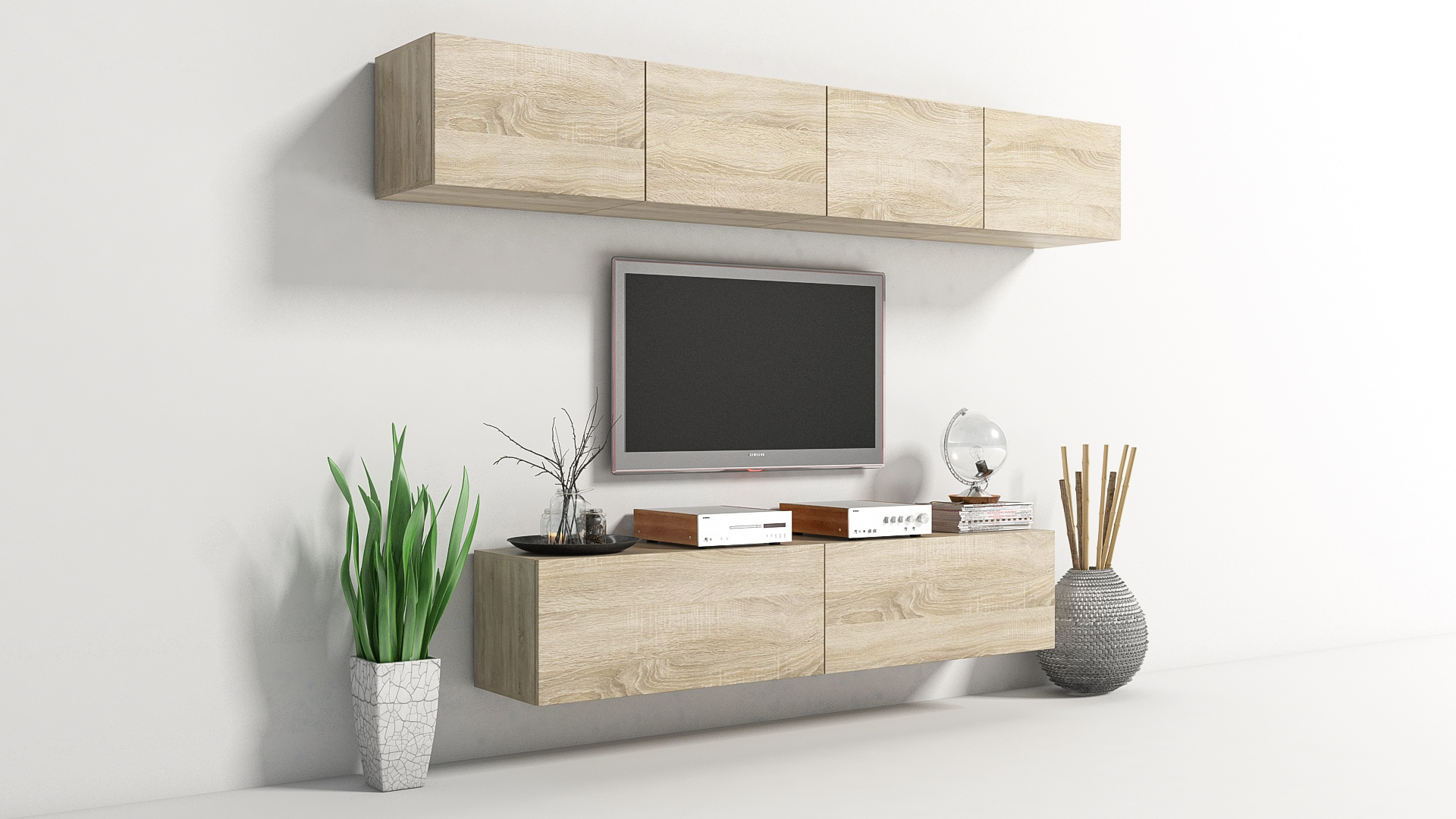 Diese stylisch imposante Mediawand CONVERT Nr.2 wird das Highlight in Ihrem Wohnzimmer. Die Fronten sind aus hochwertigem Material gefertigt und in schlichtem Sonoma Eiche gehalten. Die matt Fronten sorgen für eine gelungene Optik.