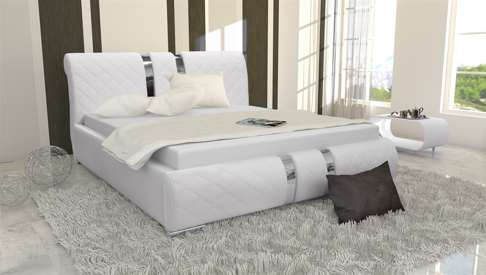 Das extravagante Polsterbett LOGAN besticht durch das ausgefallene Design. Die Bettkästen sind gepolstert und mit markanten Rundungen versehen, was dem Polsterbett Einzigartigkeit und Luxuriösität verleiht. Außerdem bietet das Polsterbett ausreichend Stauraum für alltägliche und nicht alltägliche Dinge. Das eingebaute Liftsystem ermöglicht ein kinderleichtes Aufklappen des Bettkastens und des Lattenrostes.