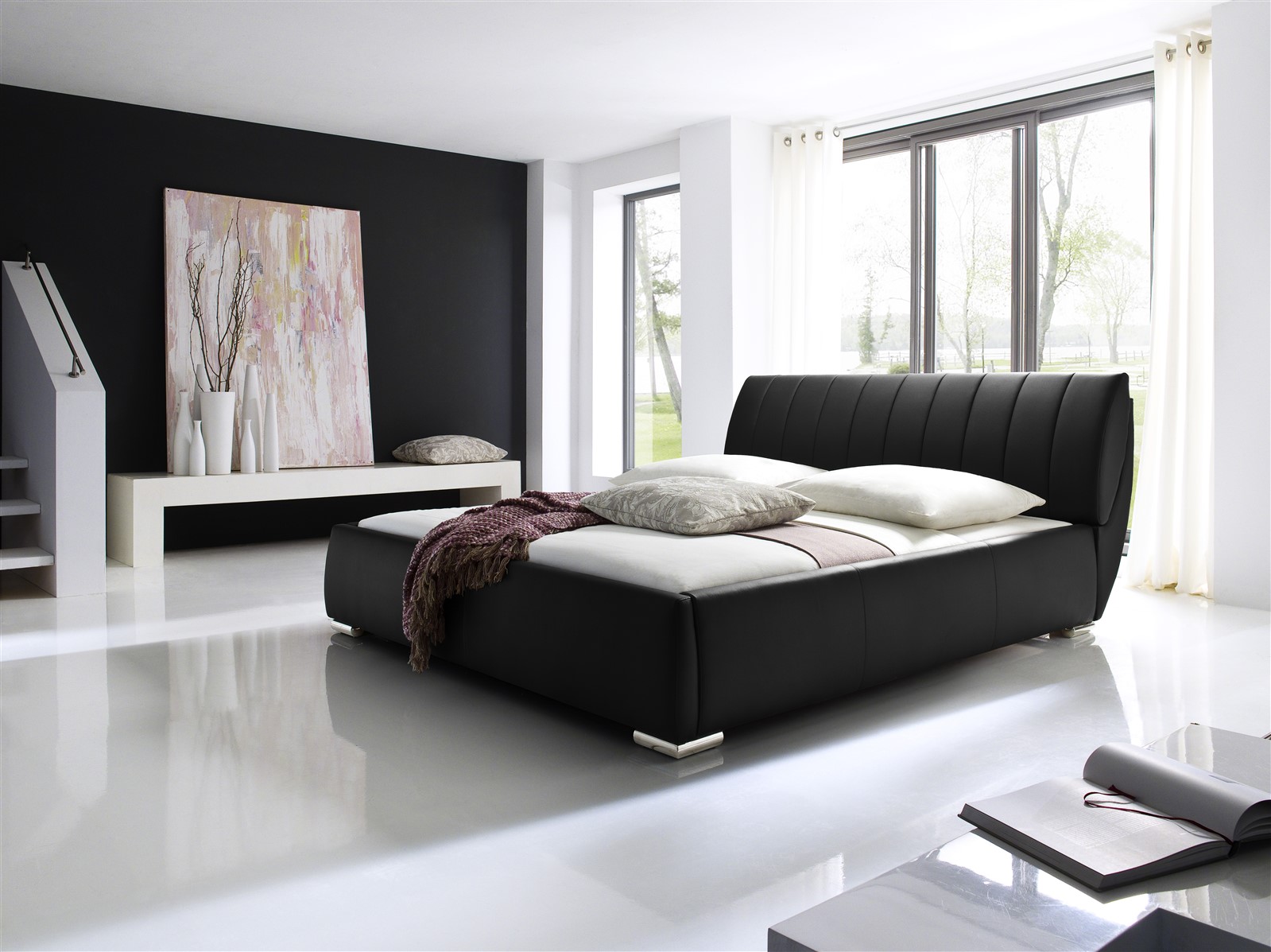 Das Polsterbett WIEN besticht durch herrschaftlich%0d%0amodernes Design. Die rundum Polsterung wirkt gemütlich und hochwertig. Das%0d%0agesteppte Kopfteil sorgt für einen angenehmen Sitzkomfort. Erhältlich ist%0d%0adieses Bett in den Größen 180 x 200 und 200 x 200 cm und den Kunstlederfarben%0d%0aweiß, schwarz und braun. Die quadratischen Metallfüße sind in Chromoptik und%0d%0apassen sich wunderbar dem modernen Design an. Darüber hinaus verfügt das Bett%0d%0aüber einen seitlich zu öffenen Bettkasten und Lattenroste die man im Kopf- und%0d%0aFußbereich manuell hochstellen kann. Der Lattenrost lässt sich durch eine%0d%0aHärtegradverstellung individuell einstellen. Das Polsterbett WIEN vereint%0d%0aschlichte Eleganz und höchste Funktionalität mit ausgezeichneter Qualität.