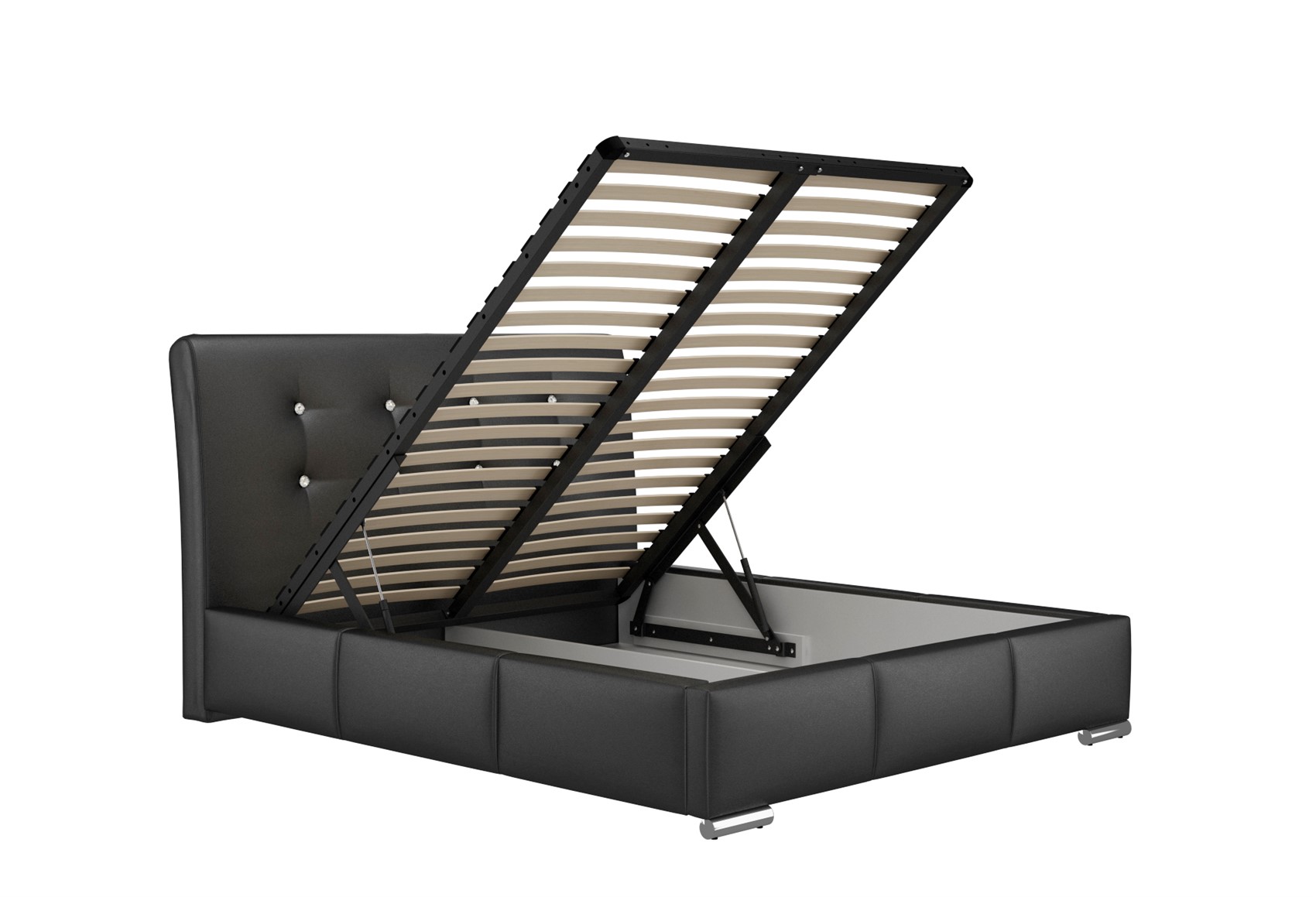 Das extravagante Polsterbett RENE besticht durch das ausgefallene Design. Die Bettkästen sind gepolstert und mit markanten Rundungen versehen, was dem Polsterbett Einzigartigkeit und Luxuriösität verleiht. Außerdem bietet das Polsterbett ausreichend Stauraum für alltägliche und nicht alltägliche Dinge. Das eingebaute Liftsystem ermöglicht ein kinderleichtes Aufklappen des Bettkastens und des Lattenrostes.