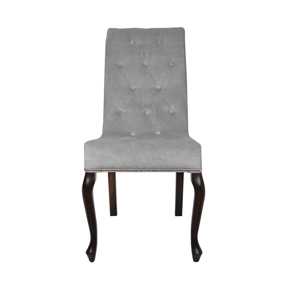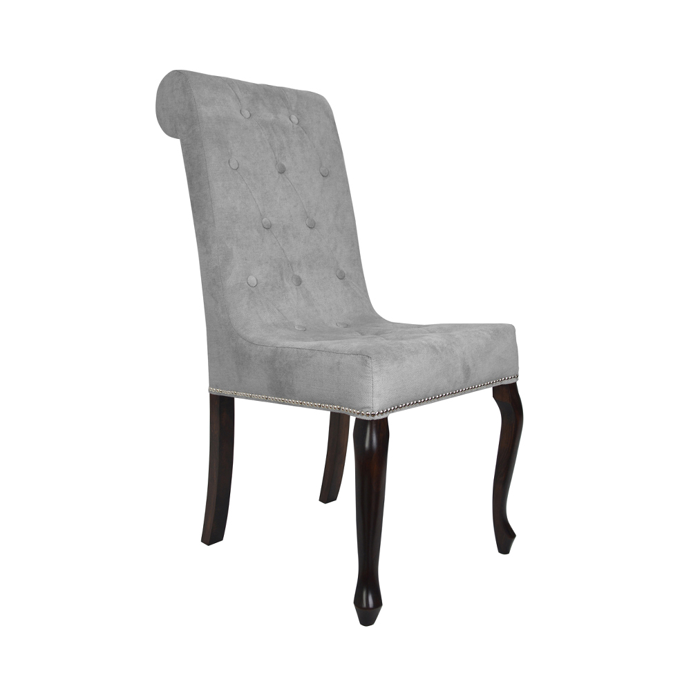 Der Stuhl ANTEA hat eine Steppung mit Knöpfen an der Rückenlehne, die oben mit einer Zierrolle versehen ist. Es ist ein Möbelstück mit einer einfachen, klassischen Form, das im Wohnzimmer oder in anderen öffentlichen Bereichen gut aussieht.