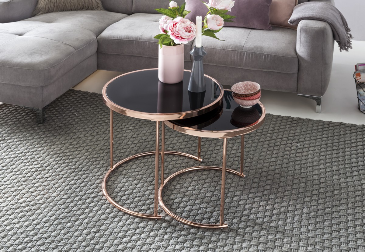 Satztisch Beistelltisch CHARMS 45 / 42cm Metall Glas Schwarz / Kupfer