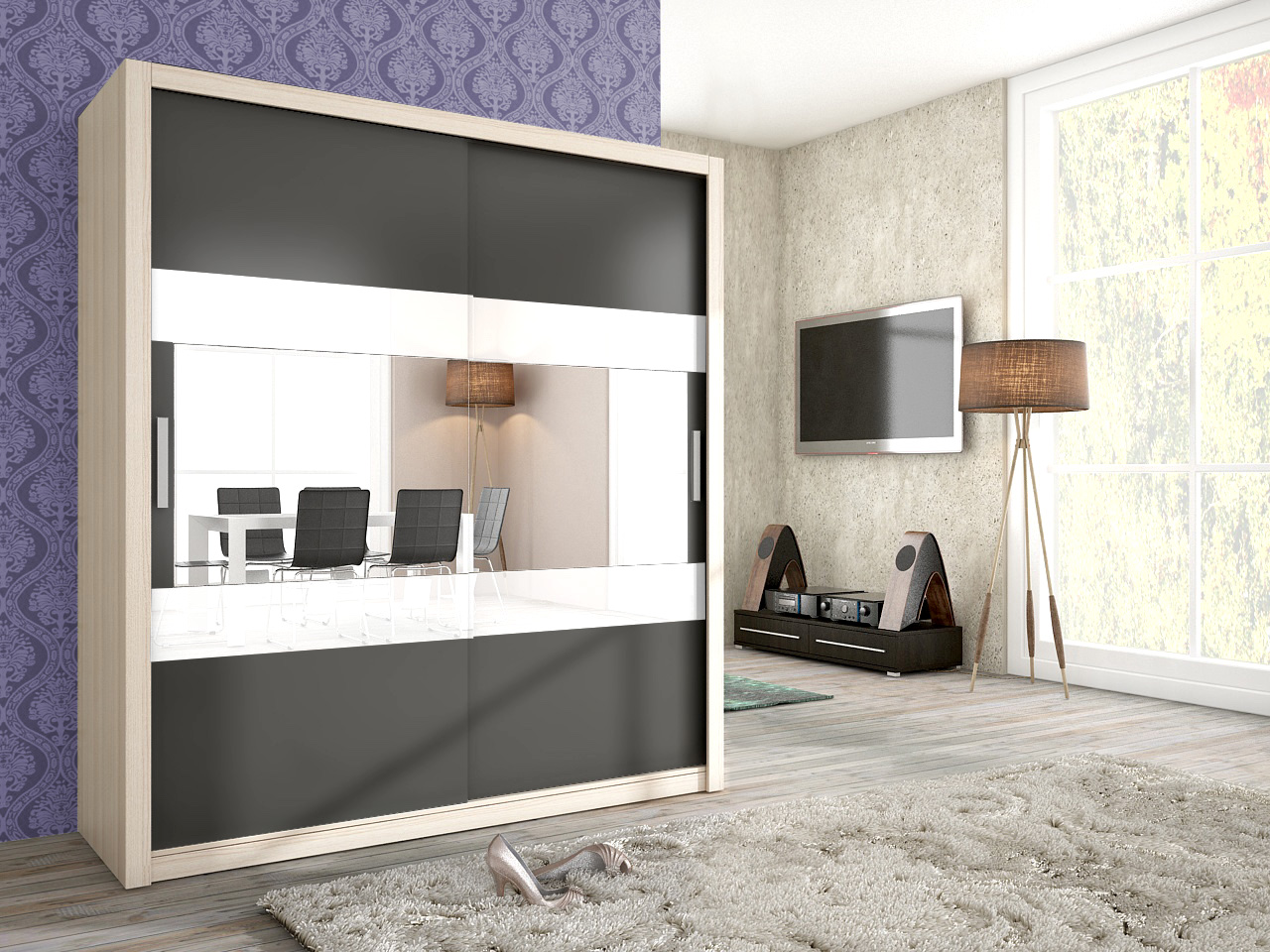 Schiebetürenschrank Schrank EMIL Esche / Graphit +Weissglas 180x200 cm