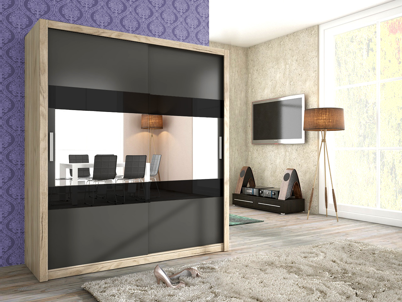 Schiebetürenschrank Schrank EMIL Sanremo /Graphit matt