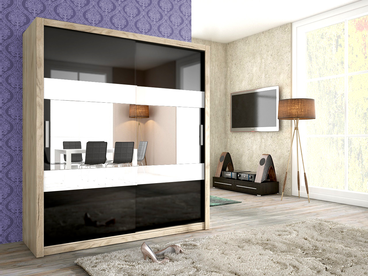 Schiebetürenschrank Schrank EMIL Sanremo/ Schwarz HGL +Glas 180x200 cm