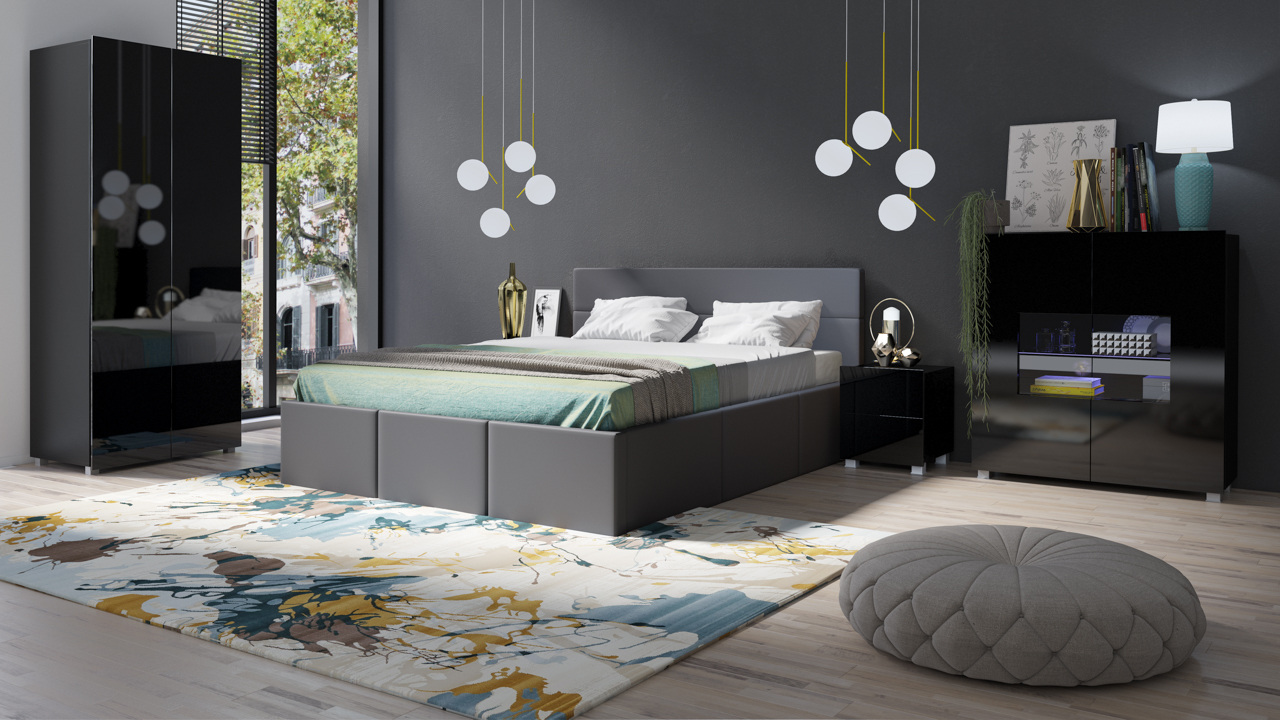 Schlafzimmer Komplett Set 5 tlg LABRI Grau- Schwarz Hochglanz