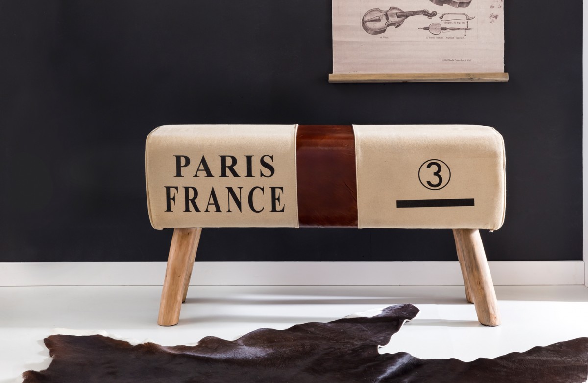 Sitzbank Bank POSTE Massivholz Echtleder Braun/ Beige 91x30x50cm