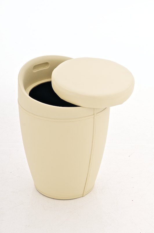 Apropos Platz - durch den abnehmbaren Sitzdeckel können diverse Gegenstände in dem Sitzhocker verstaut werden, wie z.B. Zeitschriften, Kissen etc.