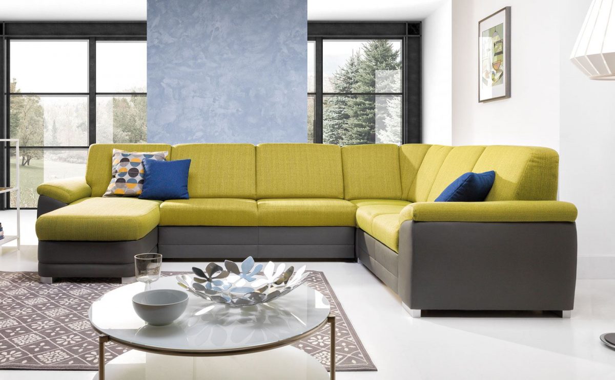 Die Möglichkeit, auf einem Möbelstück zwei oder mehr Stoffe von verschiedenen Farben und Textur zu verbinden; solche Kombination bietet interessante visuelle Effekte