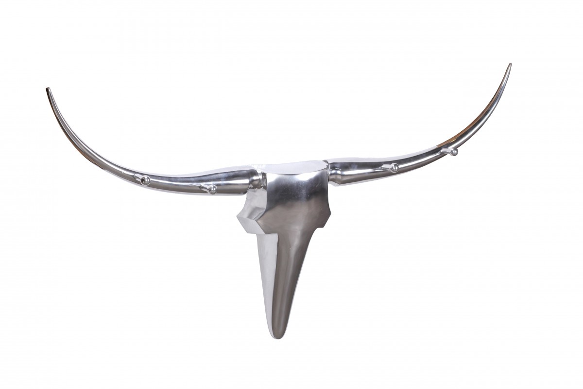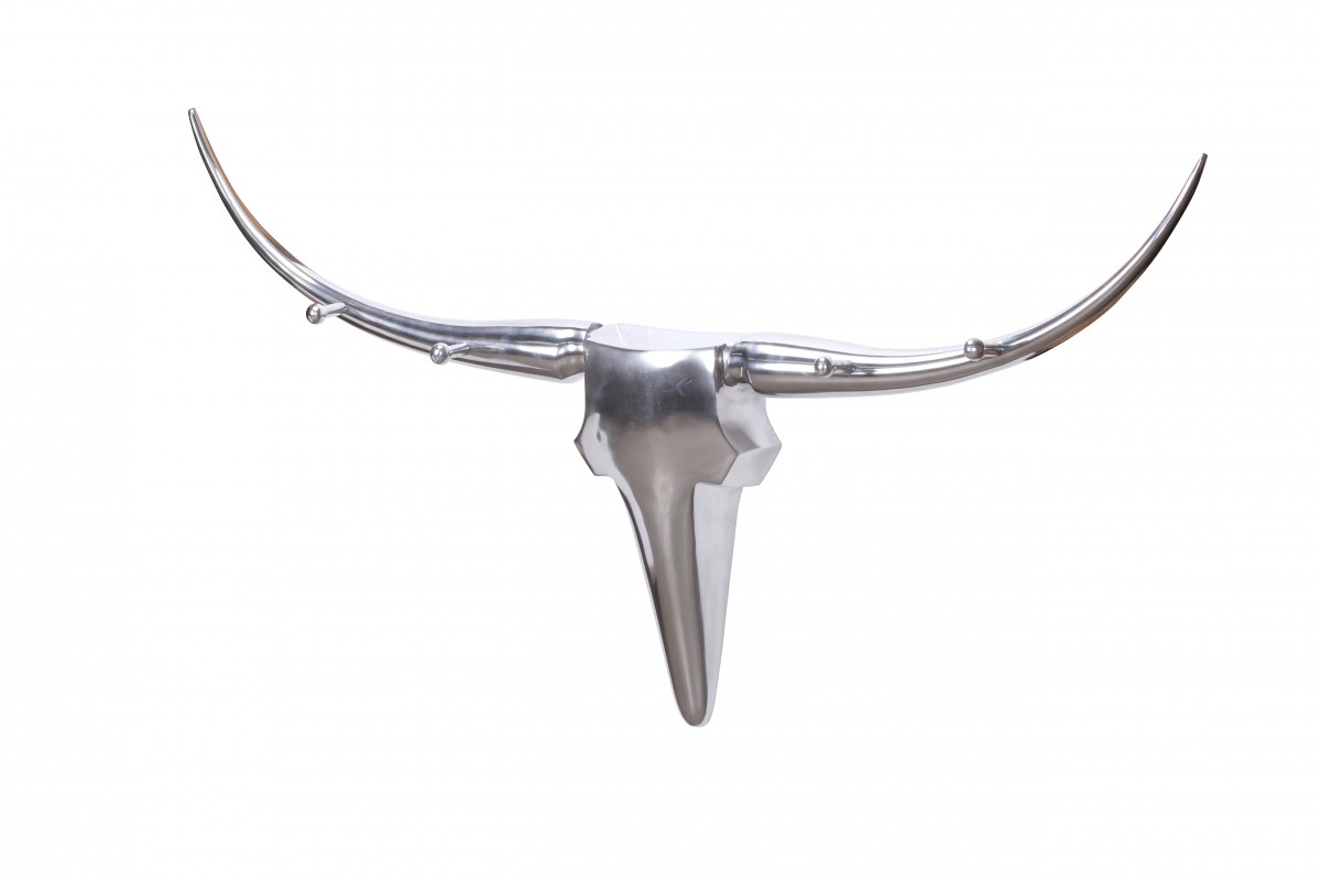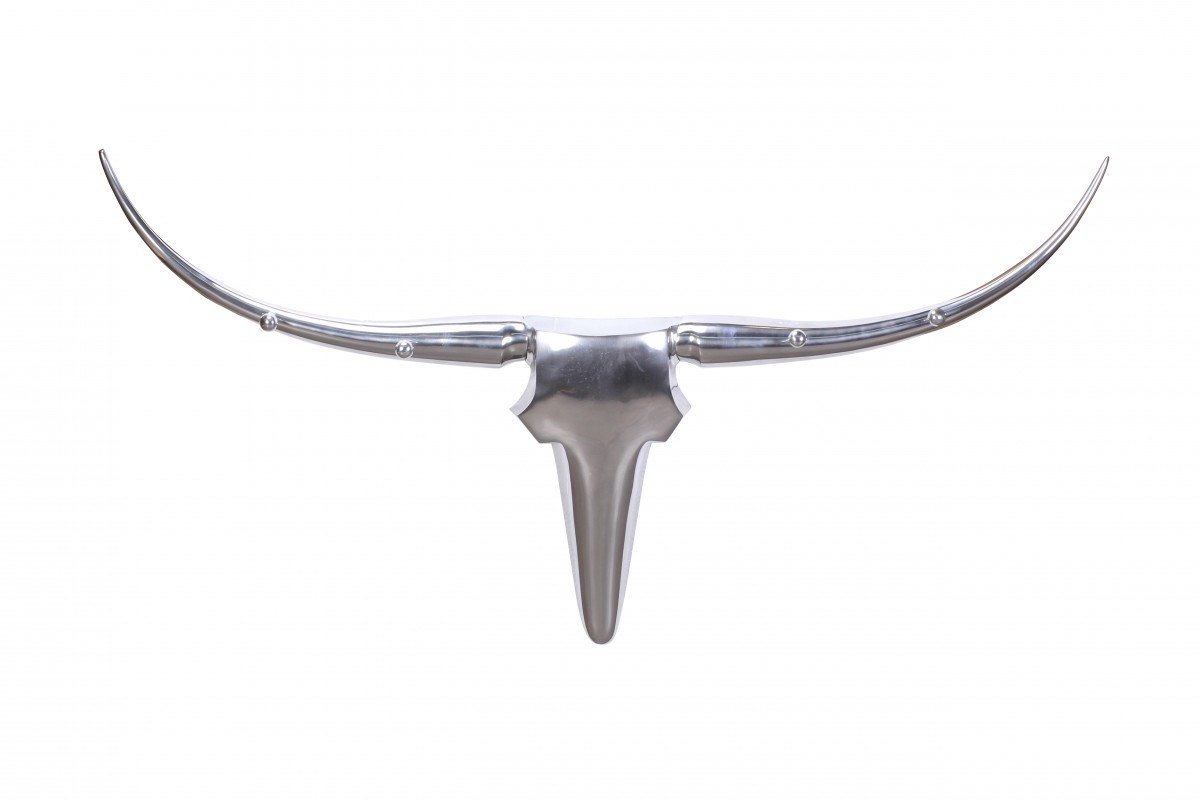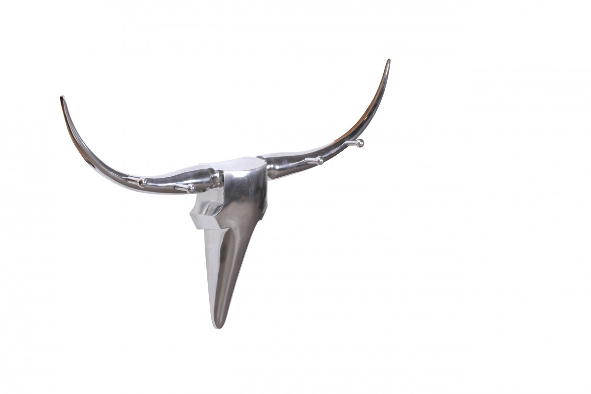 Wanddekoration Geweih Bull 125 cm Aluminium silbern mit 4 Kleiderhaken